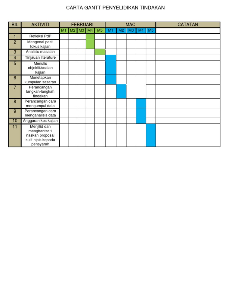 Contoh Carta Gantt Penyelidikan Tindakan Pdf