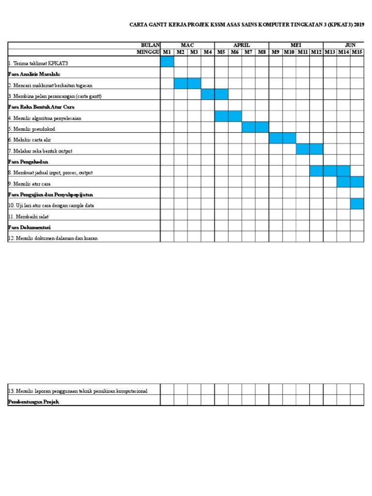 Carta Gantt Perlaksanaan Kpkat3 Asas Sains Komputer Tahun 2019
